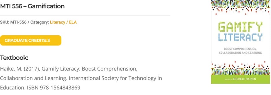 We also have a course, MTI 556, that can help with learning how to gamify your class.