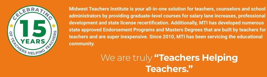 If you are looking to learn more, consider taking one of our graduate classes here at MTI. We offer the most affordable graduate classes on the market, developed by real teachers.